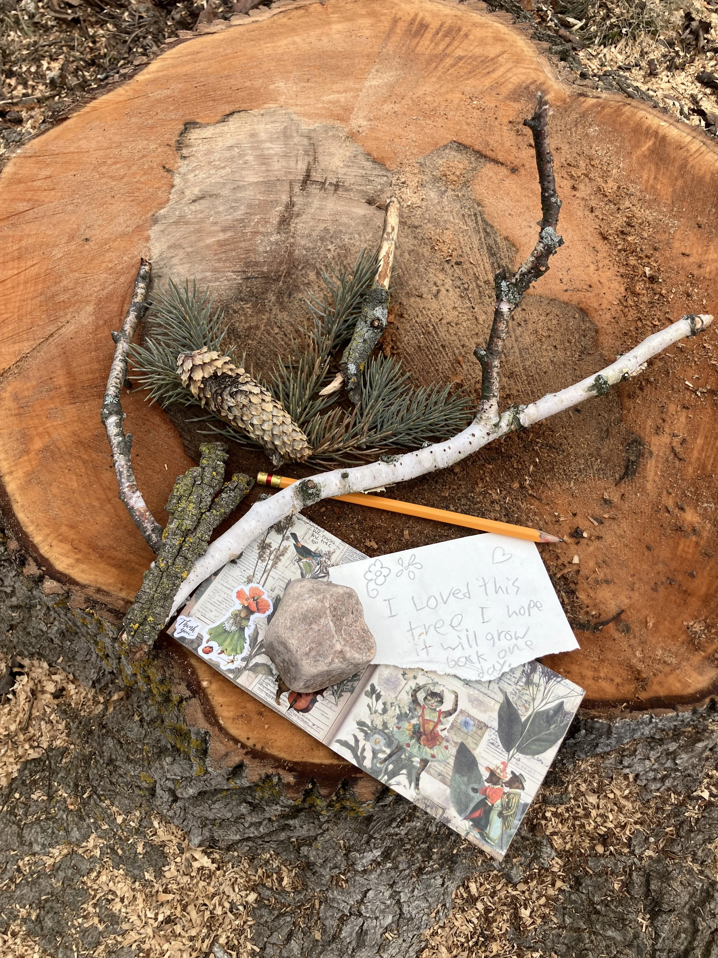 A local child was the first to reach out, leaving a carefully arranged collection of spruce and birch twigs and pine cones atop the wood. Beside these treasures lay a handwritten note that demonstrated the impact this giant tree quietly had on the community: "I loved this tree. I hope it will grow back one day." The response from the landowner was equally poignant, acknowledging a shared grief: "We miss the tree too."